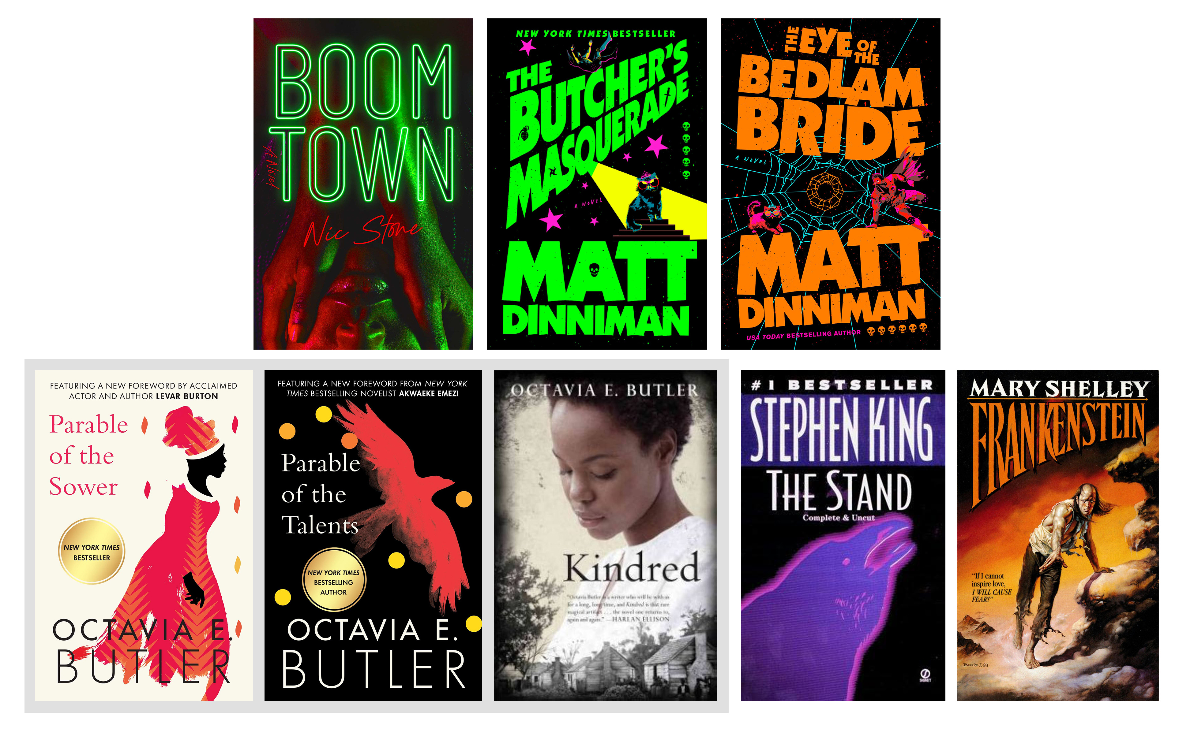 A lot of televised, intergalactic death, two King classics (but not both under his name), and Butler's short stories.